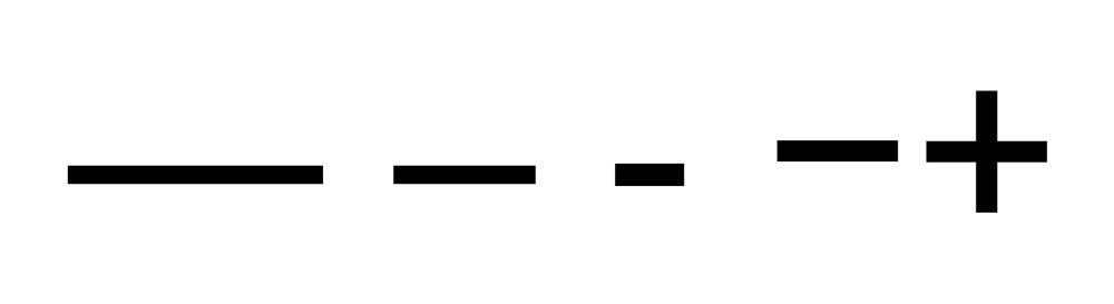 If you line up the symbols on a single line, you’ll notice that the minus sign, like the plus sign, sits slightly higher than the others. They’re aligned relative to uppercase letters and numbers: