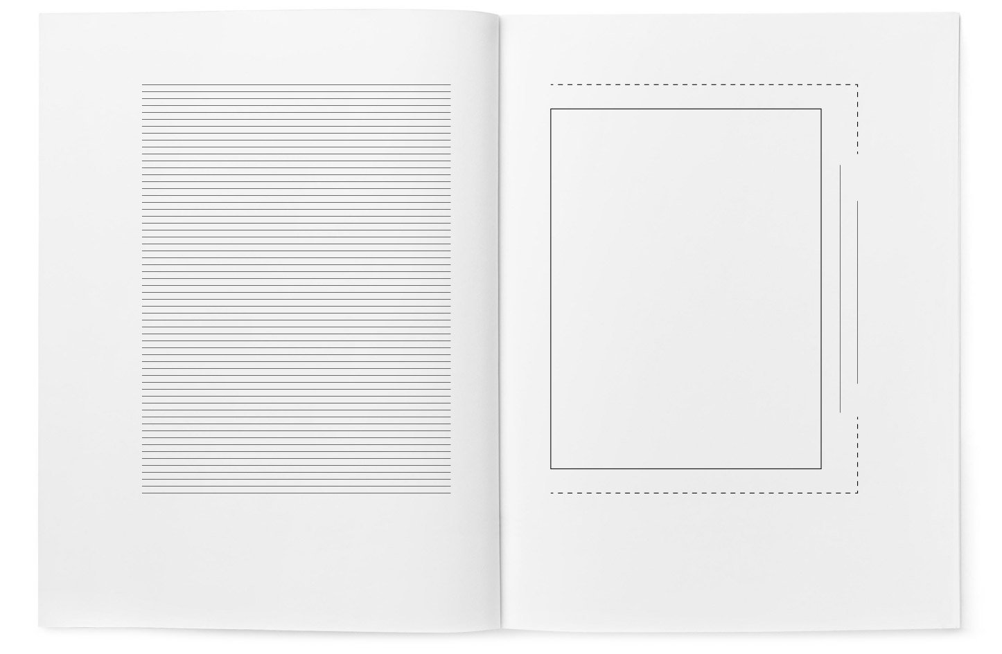 A vertical, long illustration takes up the entire height of the typeset strip, and naturally, it needs to be placed in the centre of the typeset strip (Fig. 6, left). Meanwhile, a smaller illustration (Pic. 6, right) is positioned so that the ratio between the distances from the illustration to the top trim and the bottom trim is 1:2 or 3:5.