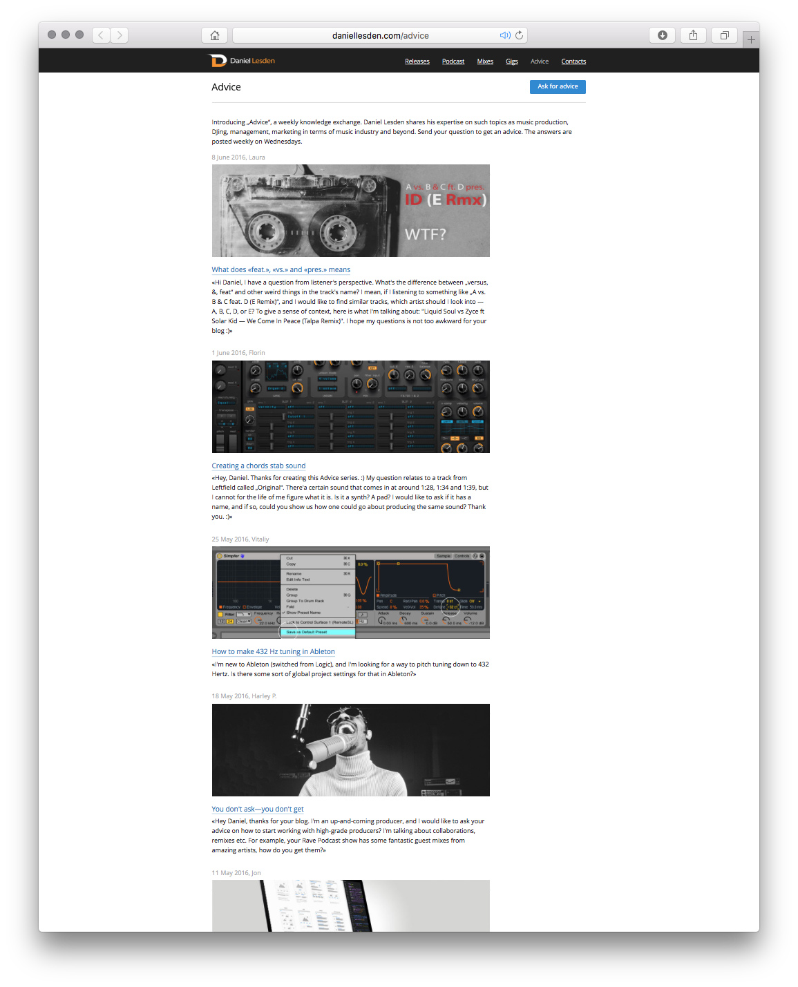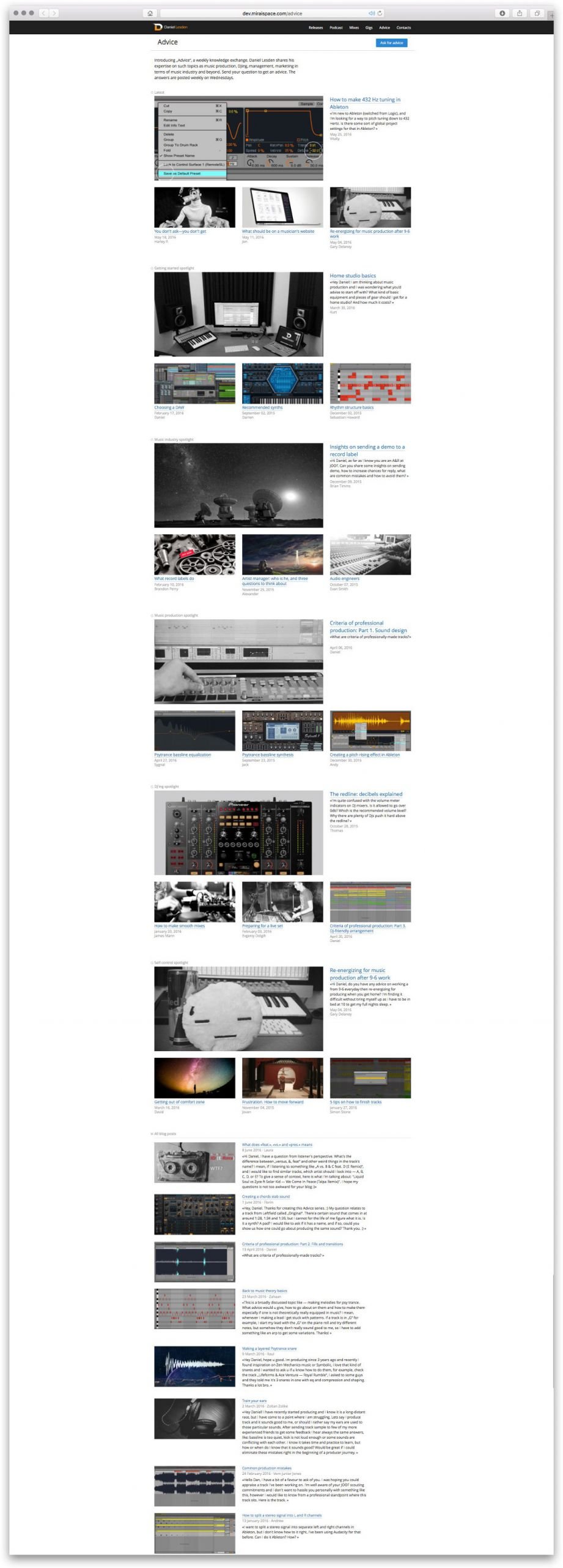 Separately, I would like to tell you about the innovations in the “Tips” section. Listeners and site visitors send the author questions on DJing, music writing and other music industry issues, and he shares his experience — that’s how the advice section works.