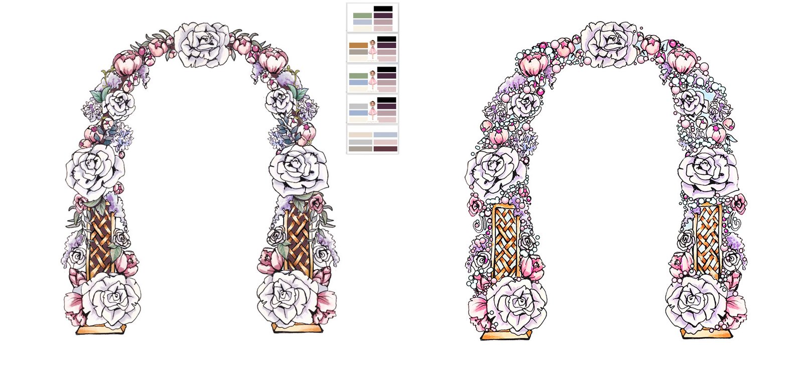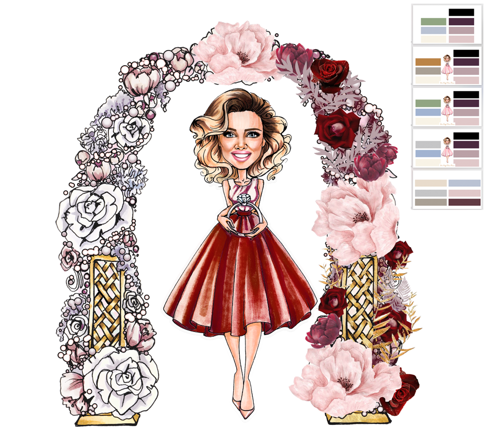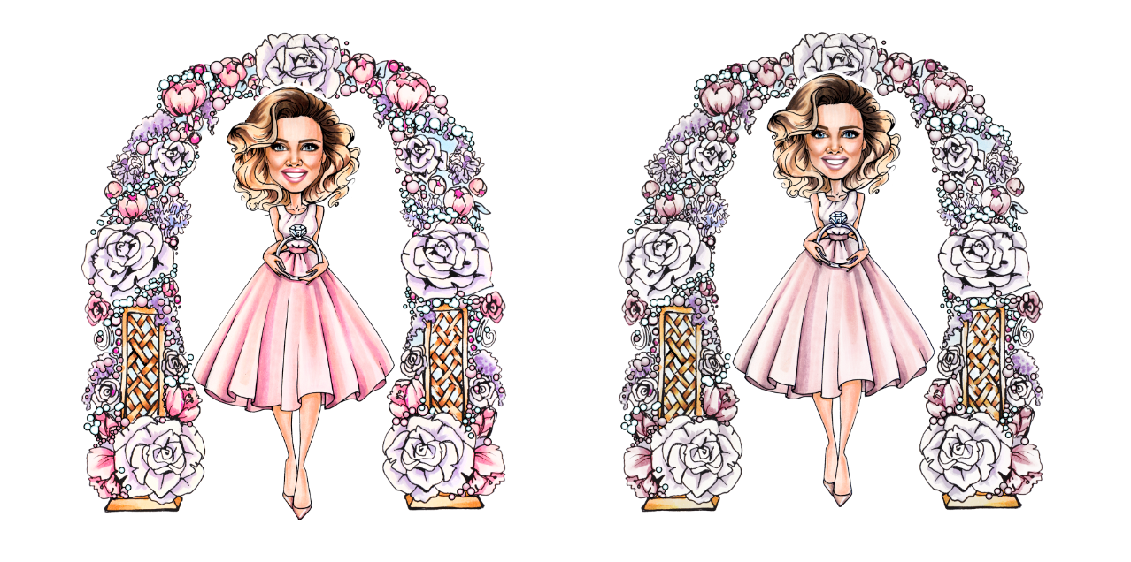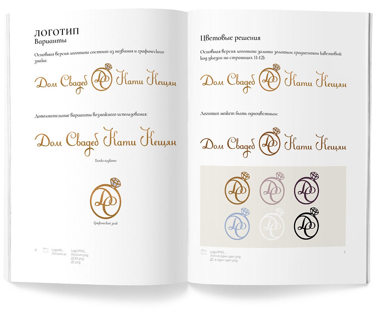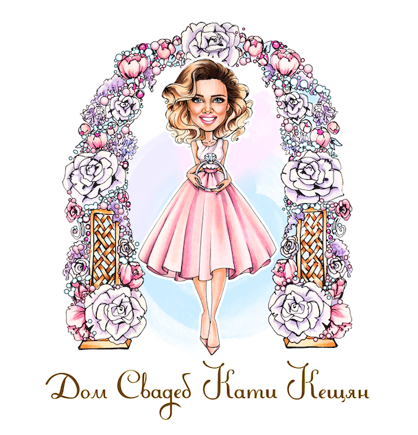 Until today, the agency’s logo was a drawn character in a flower arch (Katya herself was drawn by a commissioned artist, I don’t know her name). But the House of Weddings is growing, and with the growth, we needed a real logo. The text part came from the Duck House. We decided to keep it for now but supplement it with a graphic sign. We also decided to redesign the arch, to make the colours less saturated and to get rid of the wreath.