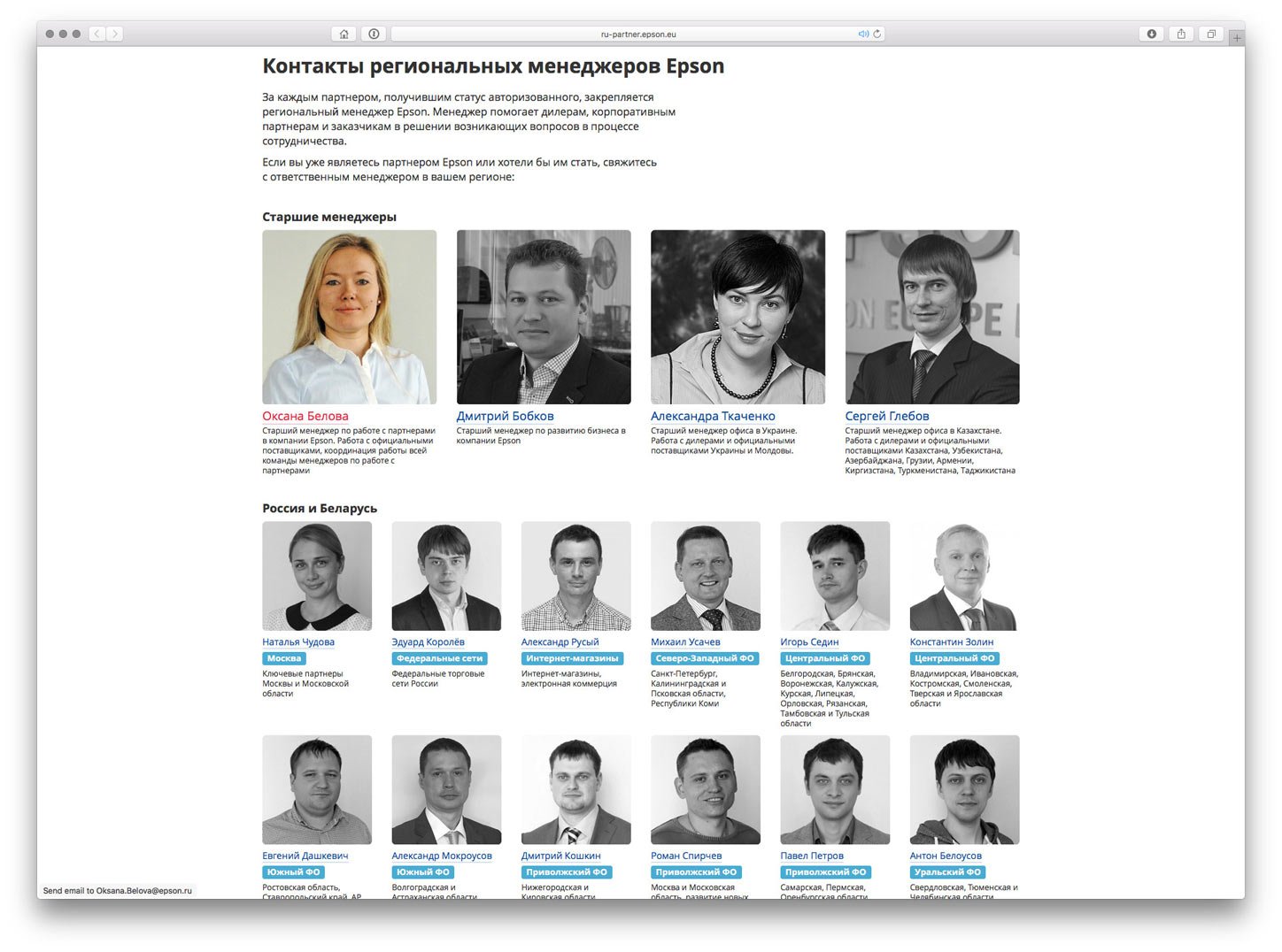 “Petrov Ivan (Partner Relations Manager) — working with dealers, corporate partners and customers of the Central Federal District – Belgorod, Bryansk, Voronezh, Kaluga, Kursk, Lipetsk, Orel, Ryazan, Tambov and Tula regions.”