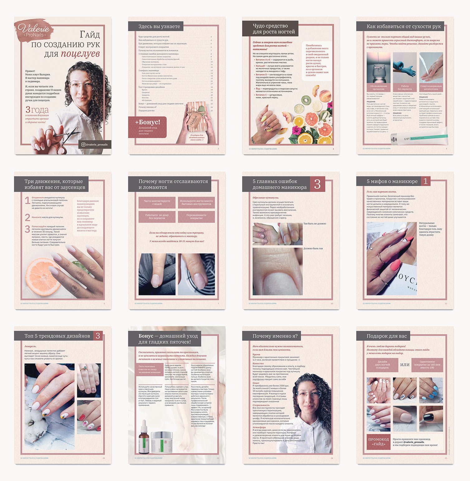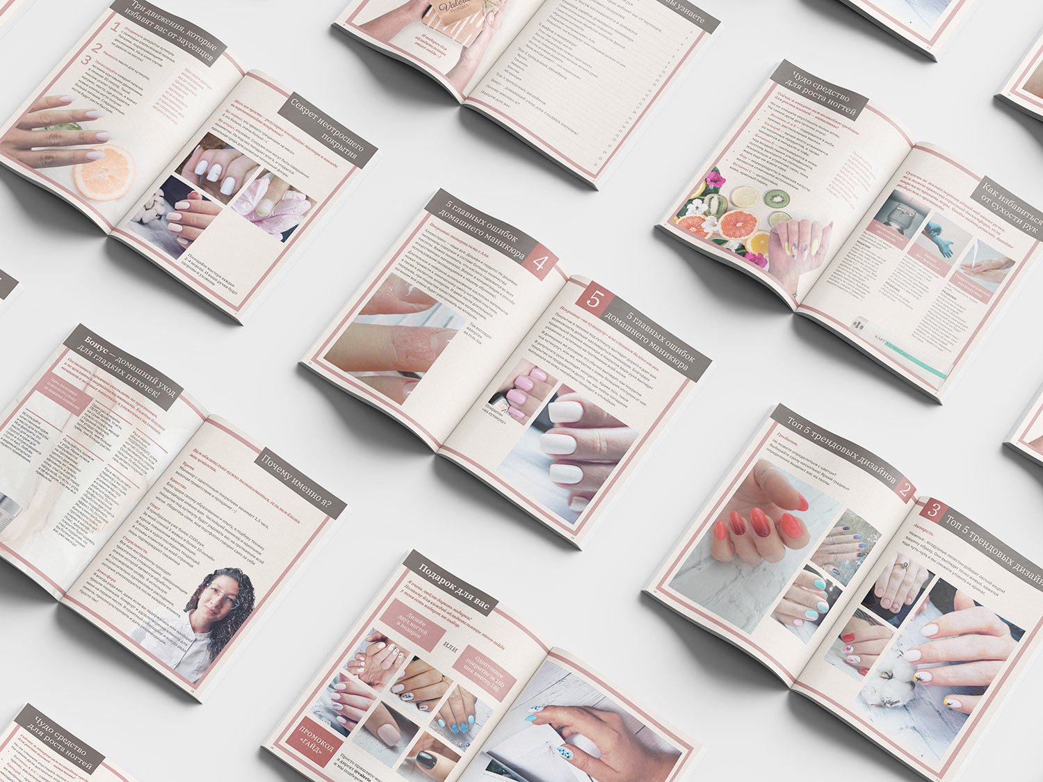 Valeria is a master manicurist and pedicurist. For her newsletter and to attract new clients she needed a guide in which she talks about hand and nail care. The guide needed to be in both electronic and printed form.