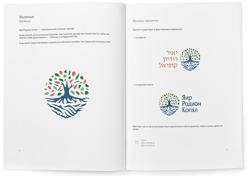 Logo for personal and business coach Rodion Kopyal. At the beginning of the work, Rodion voiced his associative wishes for the future logo: growth, support, development, aspiration, finding a way, breakthrough, search for oneself, purpose, and spirituality. That’s why I started the development of the logo with a tree of associations.