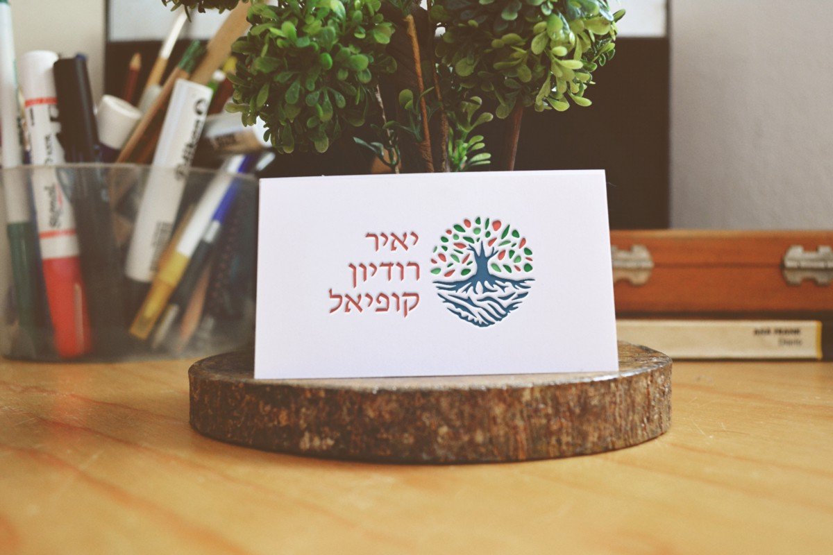 The result is a sign that combines everything we wanted to show: a tree as a symbol of growth and development; rocks as obstacles; a handshake — help and cooperation. We then picked a colour scheme for the sign and added the client’s name.