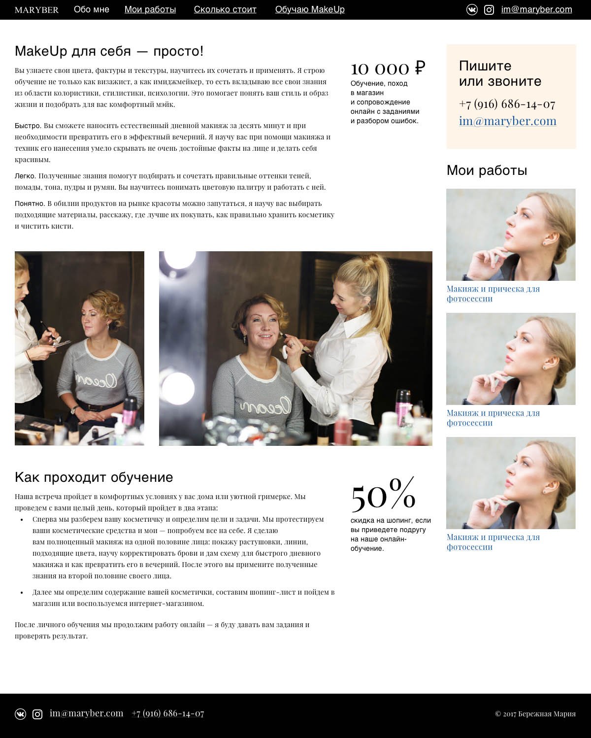 - Teaching MakeUp. This is one of the services Maria wants to emphasise, so there is a separate page for it.