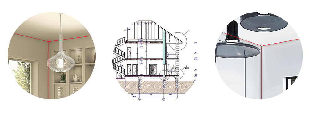 I combined the three axes of the interior corner of the room with the architectural drawing, thus emphasizing both architecture and interiors.