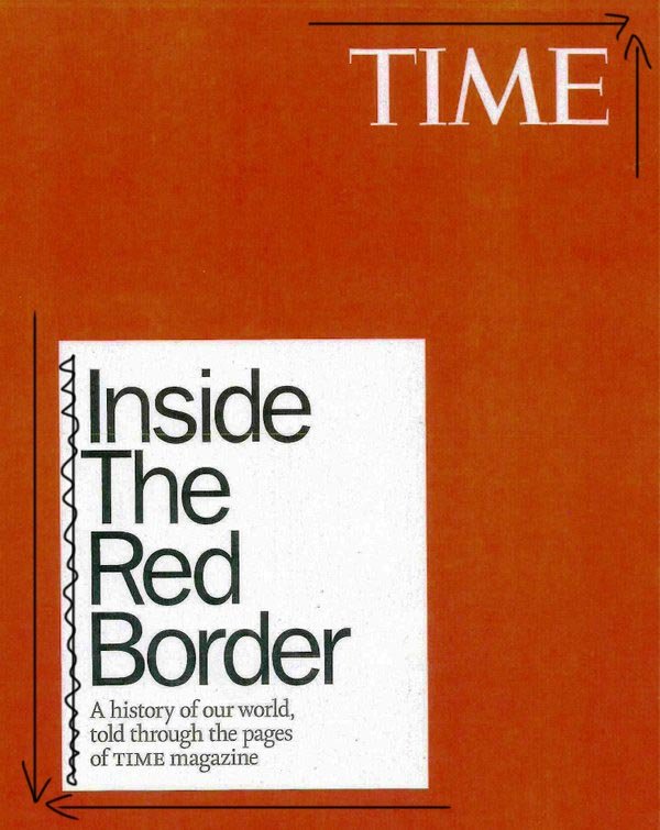 On the right page, the man in the black jacket is centred and gravitates downwards. If we consider the spread as a single unit, the headline and the figure, as the two brightest spots, pull towards the corners and balance the overall module. Note: the first thing we see on the spread is a face, i.e. a circle.