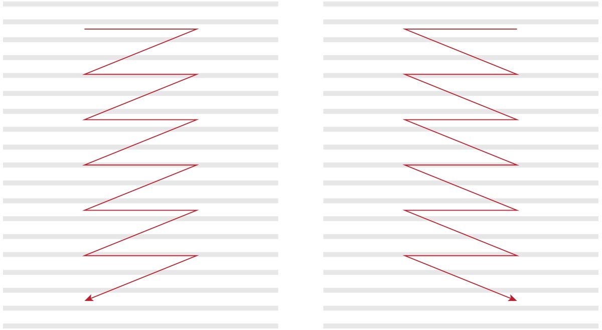 In order to look at the page comfortably, the collection of the layout should always begin with the most significant objects and lead the reader’s eye from one to another. People tend to read information in the course of writing: from left to right, from top to bottom. In a Hebrew-speaking environment, the direction is reversed — right to left, top to bottom.
