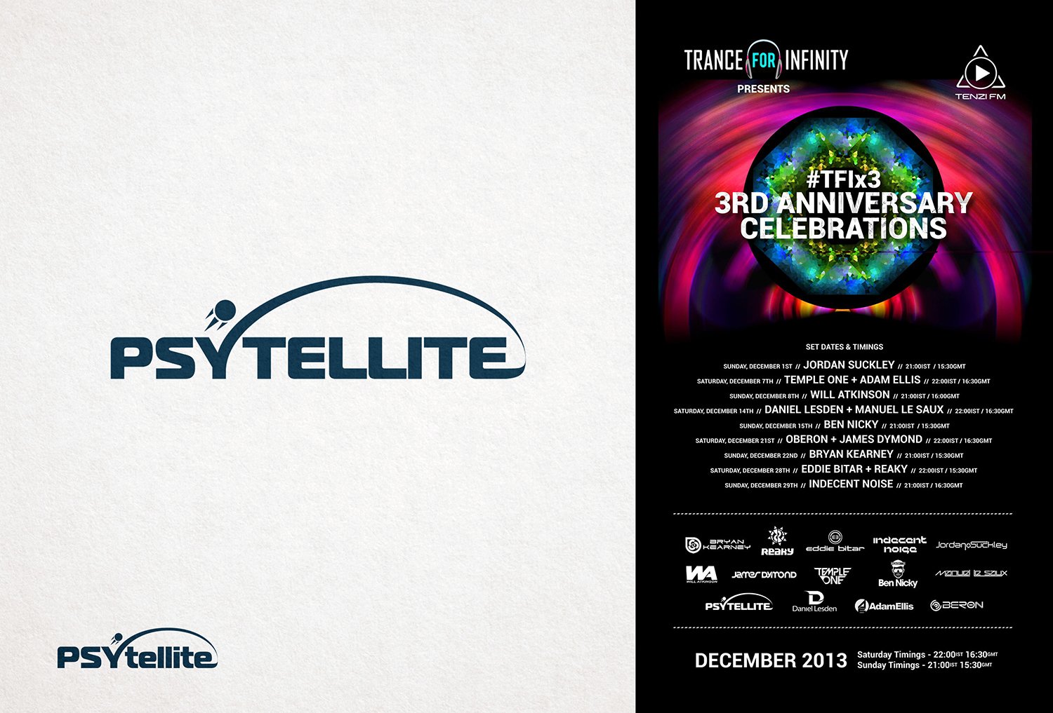 Psytellite is a musician and DJ. His creative pseudonym is formed from two English words: “Psy” (Psychedelic Trance music) and “satellite”. Designed for him a logo symbolising the flight of a satellite over the planet’s orbit.