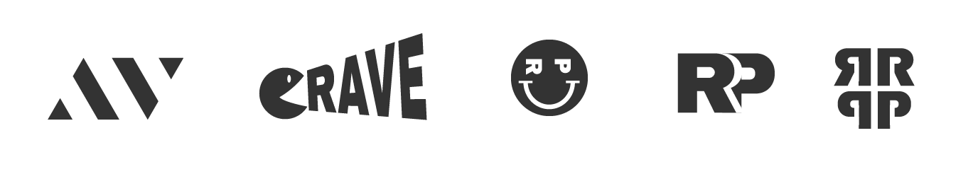 The bottom right is a simplified AV of the word “RAVE”. It reminds me of a warning ribbon, so I decided to stick with it for now. Sketched some more ideas at the same time: