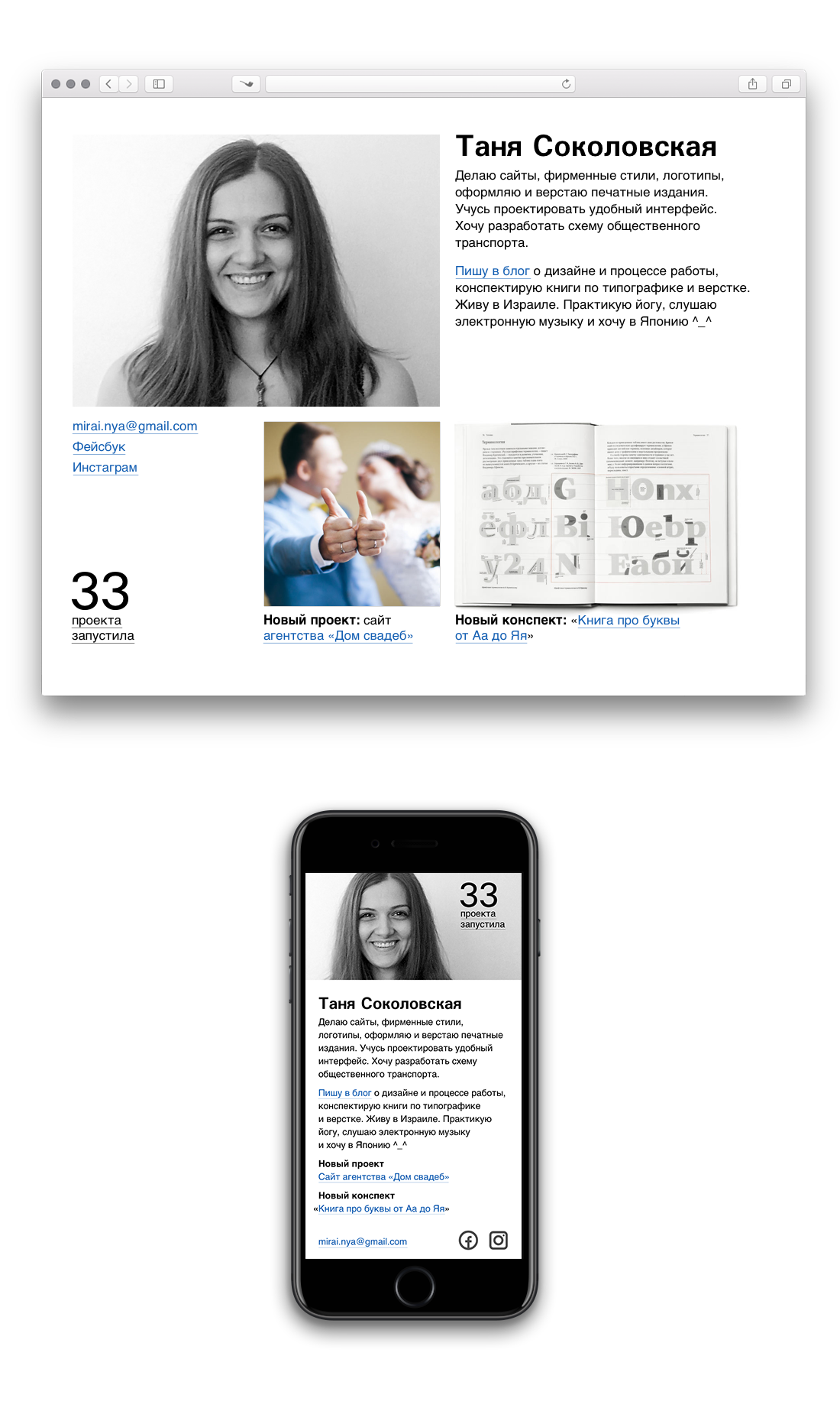 We put together the “About Me” page. We didn’t need to come up with anything super-cool. The main thing is to stick to all layout principles.