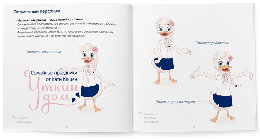 The Duck House event agency is engaged in the organisation of family celebrations: from weddings to birthdays. The owner of the agency Ekaterina Keshchyan knew exactly that the visual style of the company should be soft, homely, cute and attractive to both adults and children.