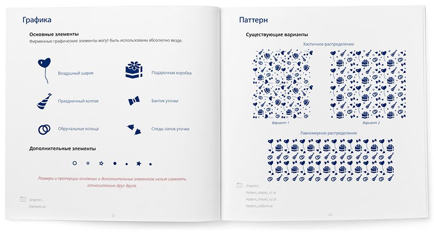 The main element of the corporate identity of the Duck House event agency was a pattern consisting of festive attributes. The result is a flexible style that looks great on any media and in various forms: