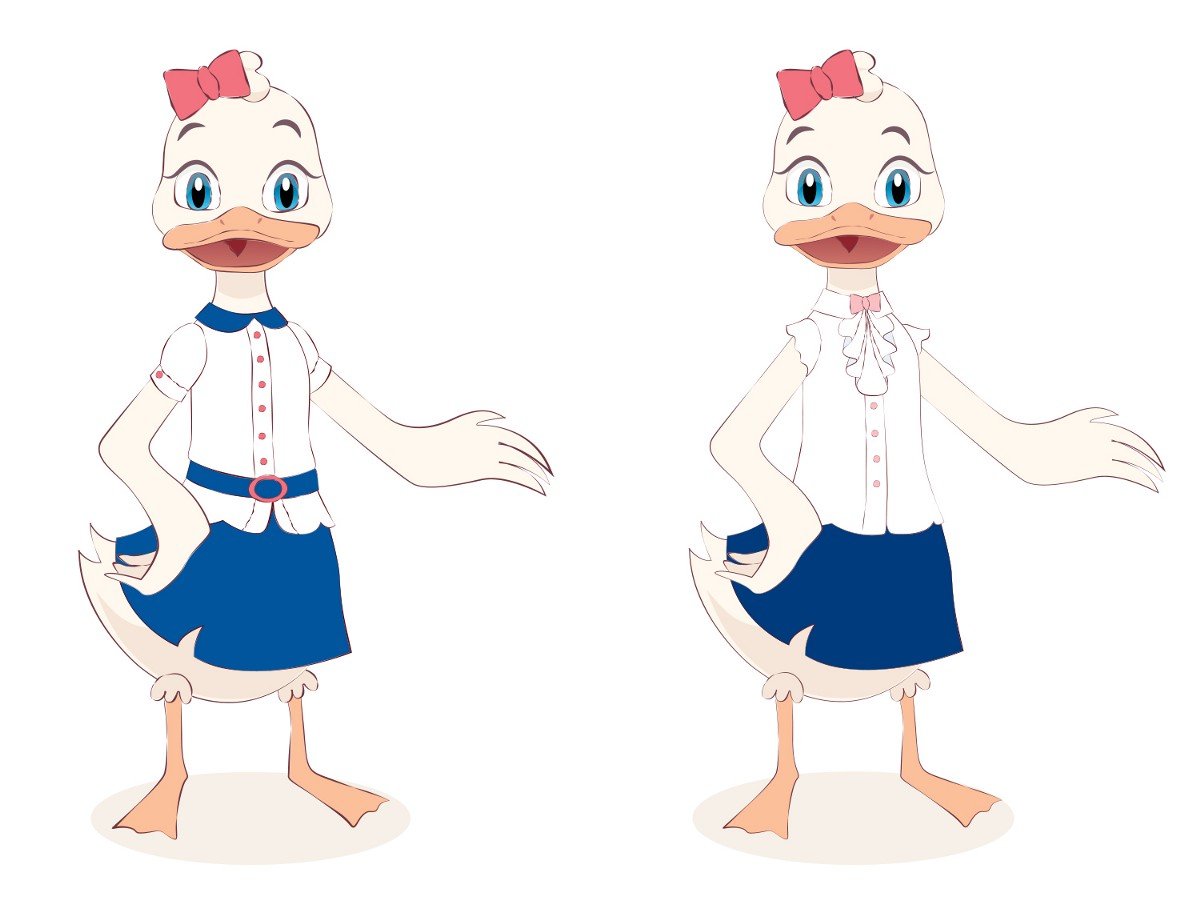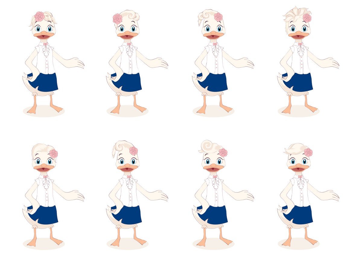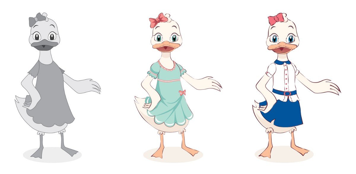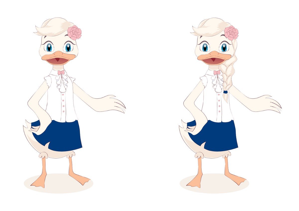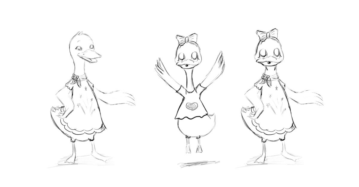Katya specified that she did not want a “rubber” duckling, but a cartoon character, and so the first sketches were born: